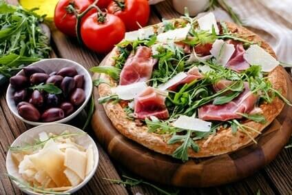Würzige Pizza mit Eiweißpulver backen